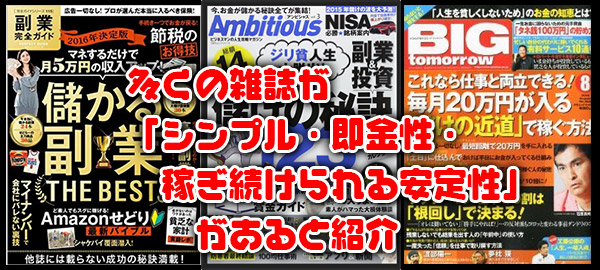 短期間で大きな成果を上げる事ができるのだけではなくてパソコン1台とインターネット環境があればどこでも仕事が出来るというのも魅力的であります。常にパソコンを持ち歩く事により、本業の息抜きで行く旅行先でさえもお金を稼ぐことが出来ており好きな時間に好きな場所で仕事が出来るので、本業にも支障を来しません。