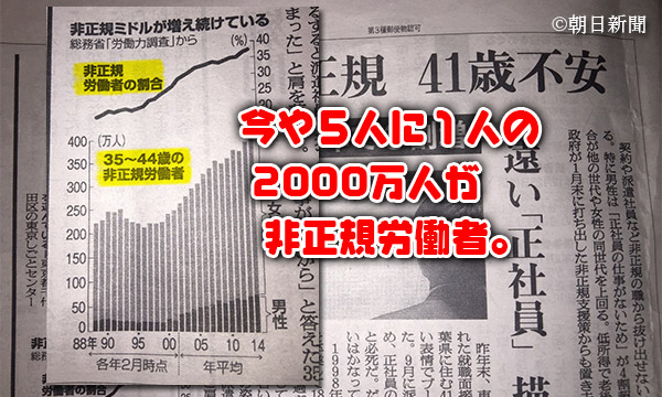今や5人に1人にあたる2000万人が非正規労働者。